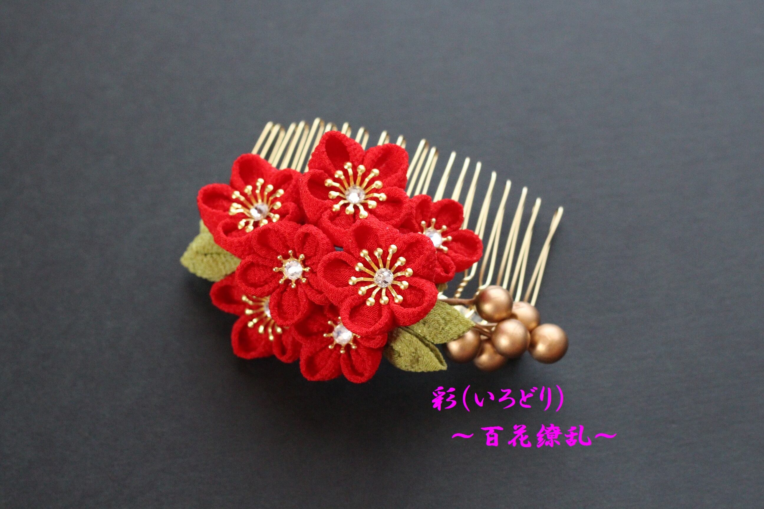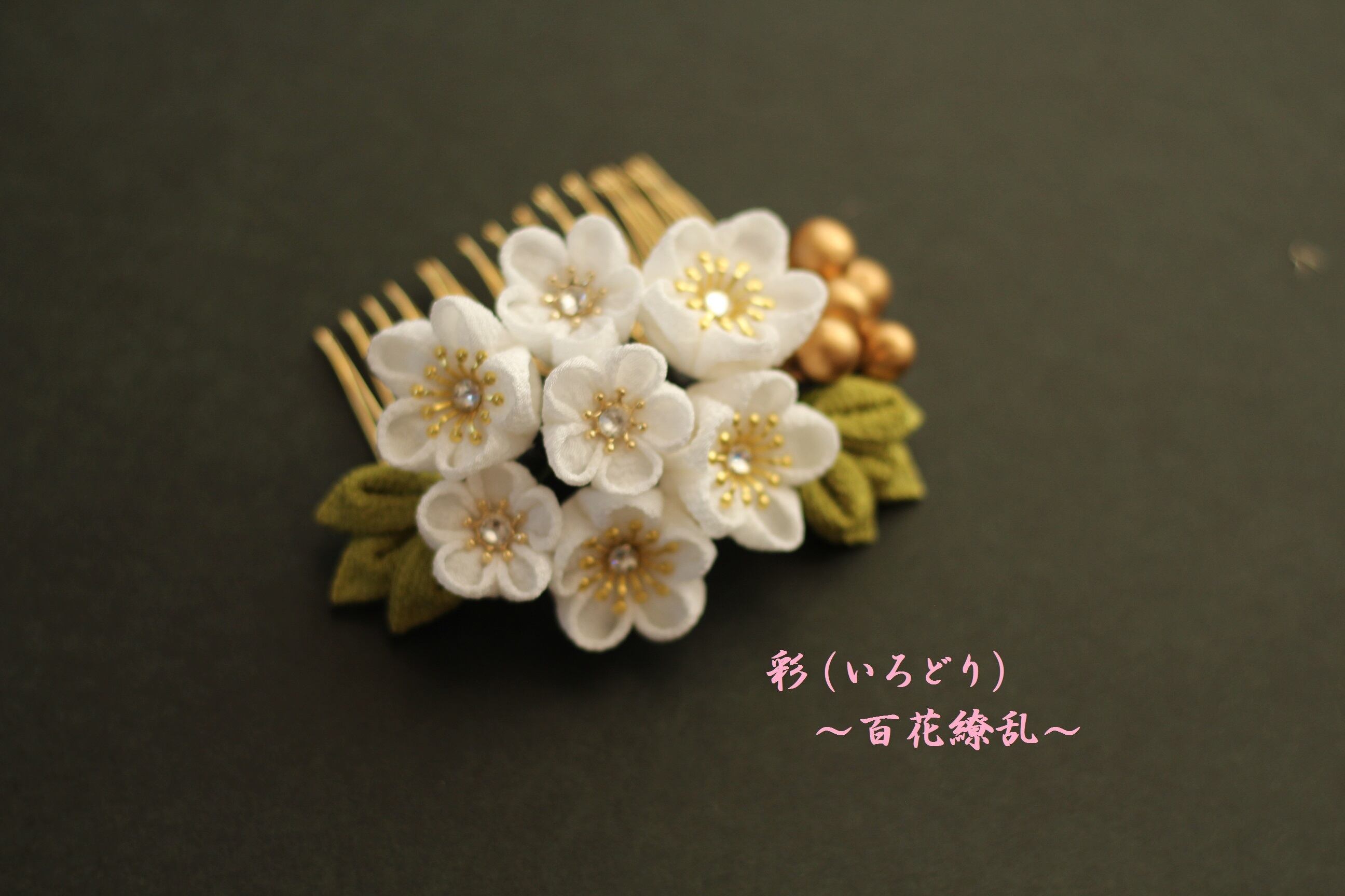(ご希望がある場合はコームを小花を2、3本ずつに分けたUピンに変更も可能です。メッセージにてお申しつけください。)
