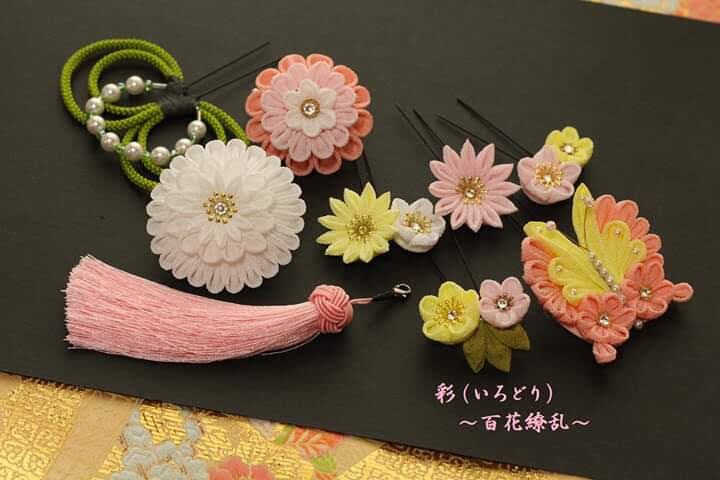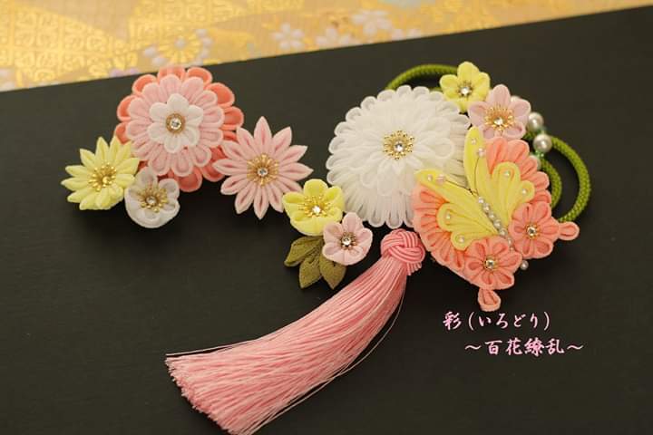 一越ちりめんを使用したつまみ細工の髪飾りです。