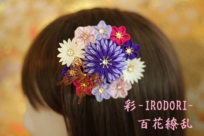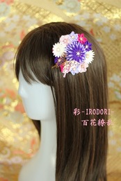 つまみ細工の髪飾 手染め生地絹100% 紫系