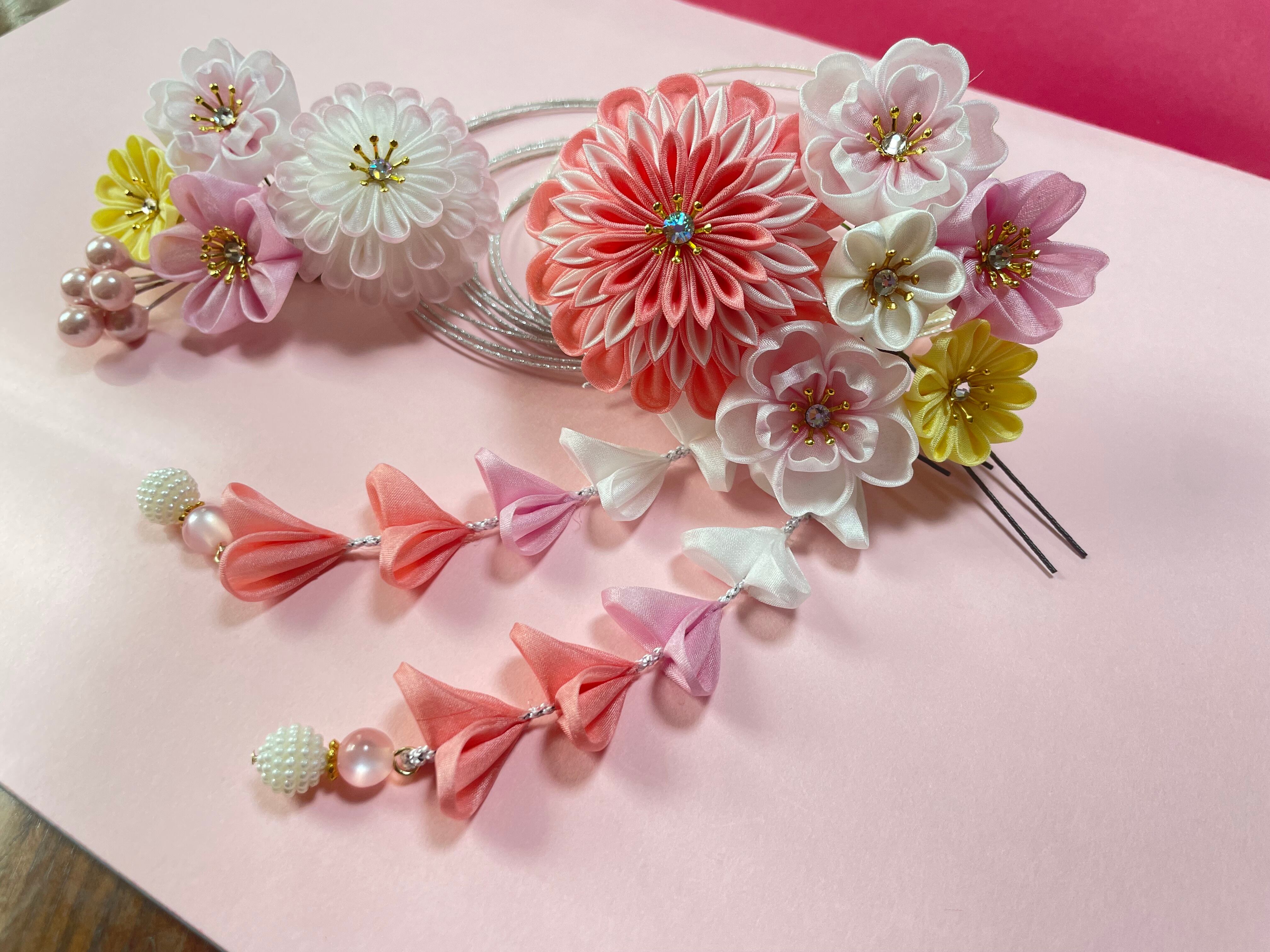 伝統的な技術を持ち合わせた職人さんの手により、日本の美しい花々をあなたの髪飾りとしてお楽しみください。</br>