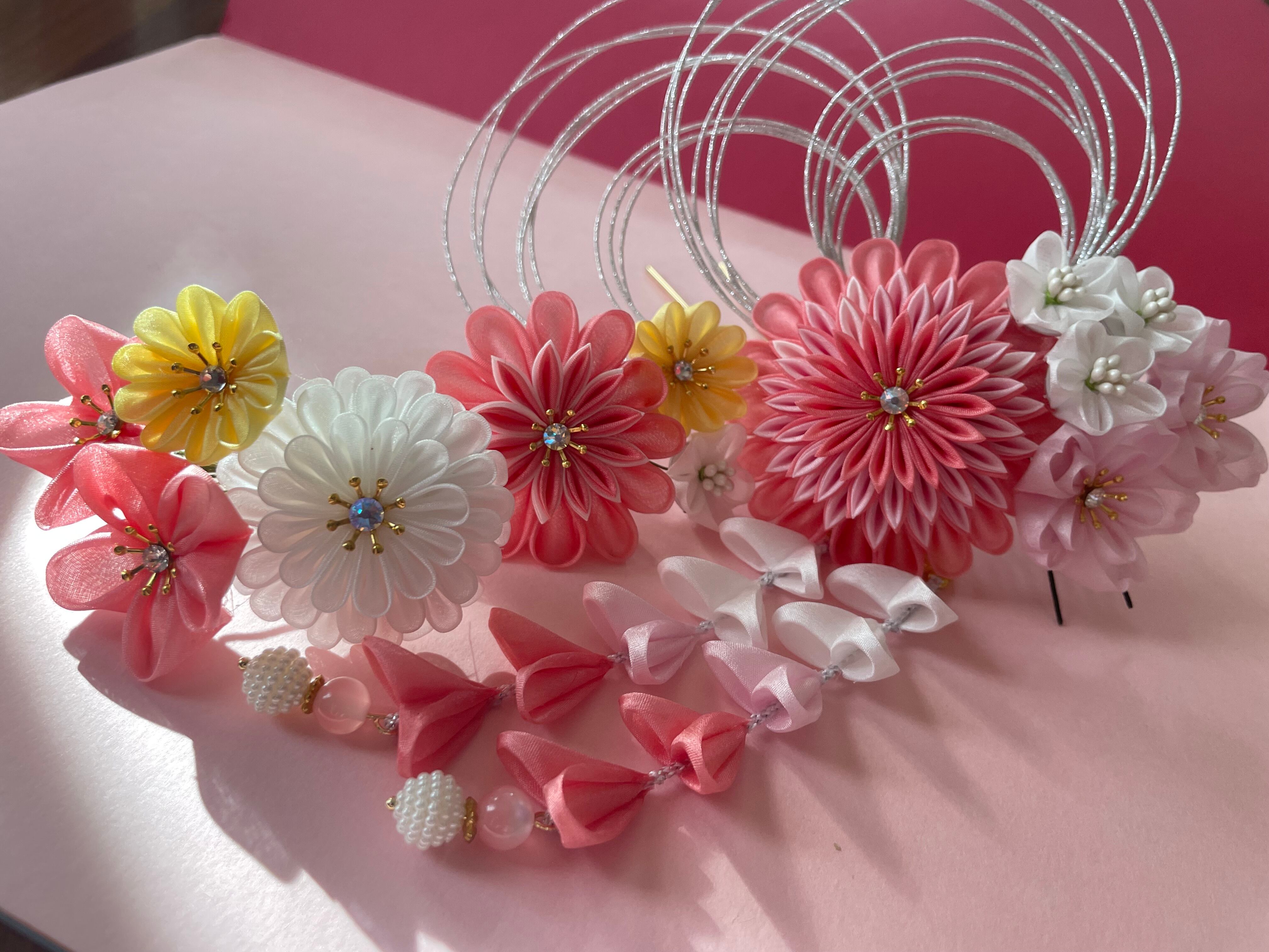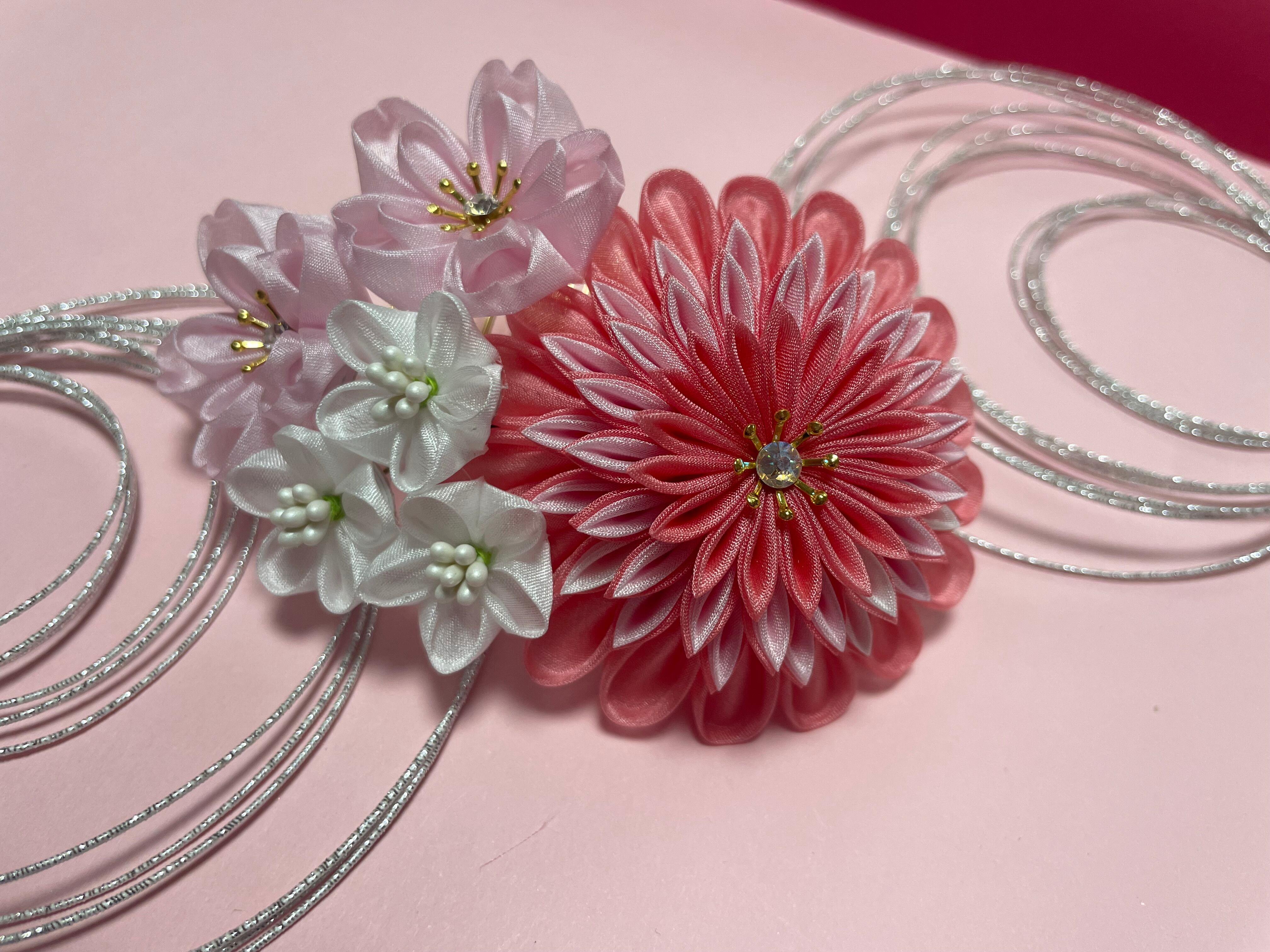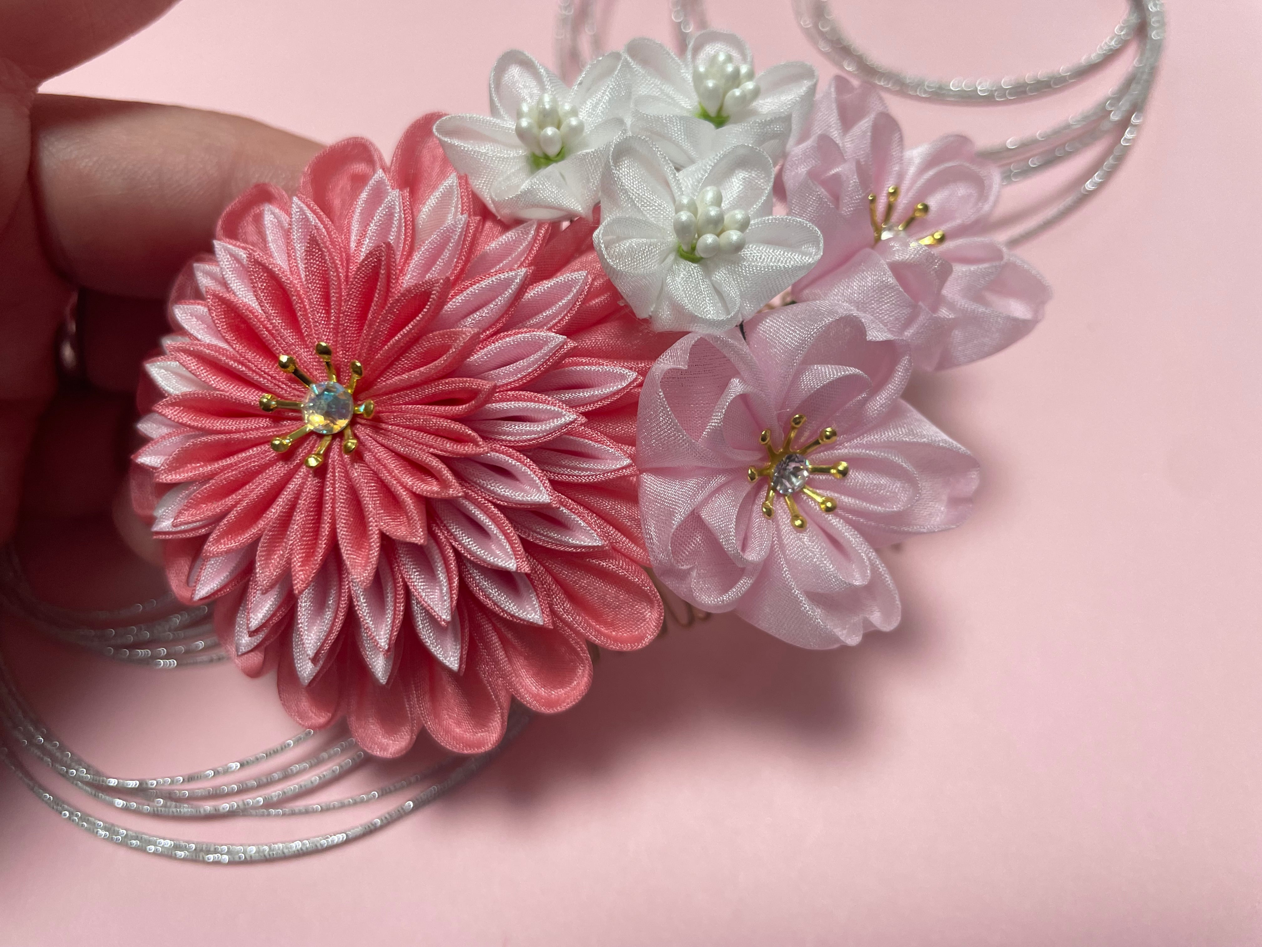 桃花髪飾り フルセット 手染め絹 つまみ細工 成人式 髪飾り 和装 色打掛 振袖 袴 結婚式 和 和婚 花飾り