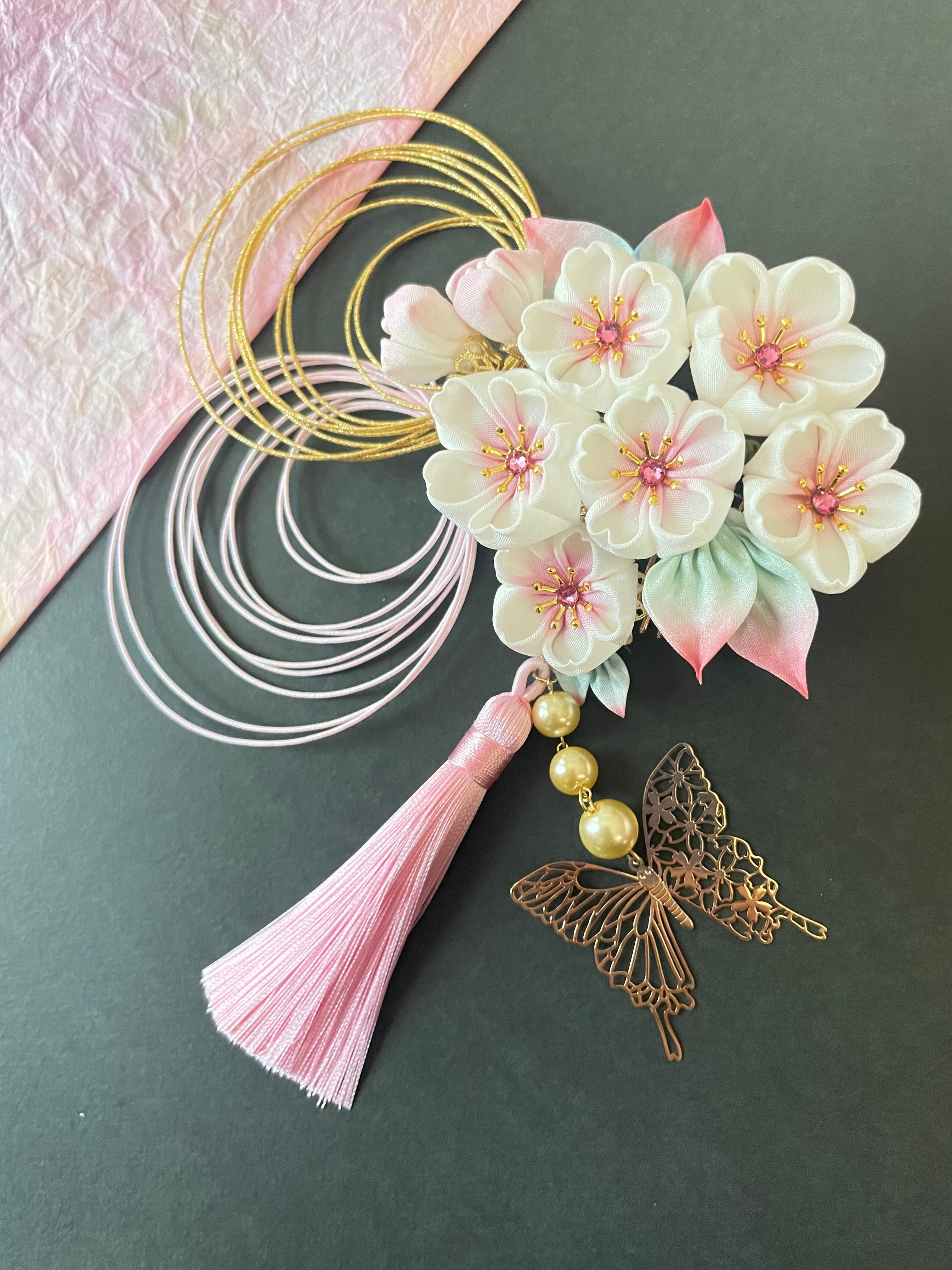 伝統的な技術を持ち合わせた職人さんの手により、日本の美しい花々をあなたの髪飾りとしてお楽しみください。</br>